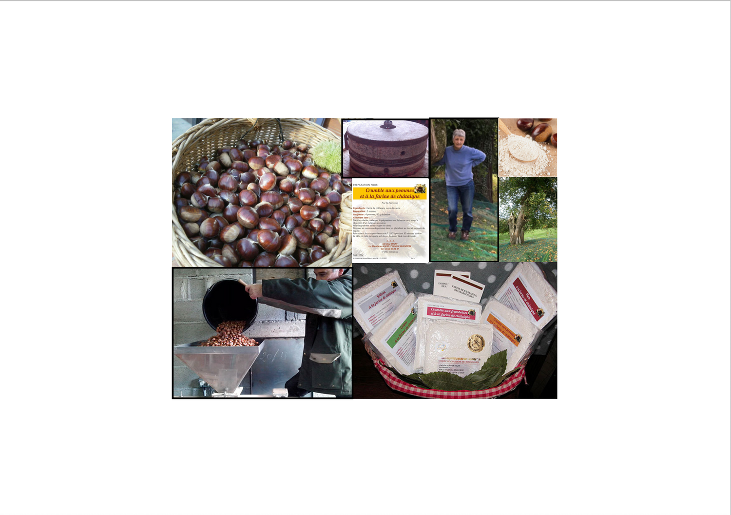 Les arbres de leur exploitation, plantés par leurs ancêtres, sont multi-centenaires ! Ils sont le départ d'un travail minutieux et fastidieux, garantissant la qualité de la farine et respectant les traditions et la nature : ramassage à la main, séchage au grenier, tri et décorticage (« pisage ») à la main, broyage dans un moulin à meule de pierre (1h pour 30kg de châtaignes) et blutage (tamisage) pour séparer la farine selon sa finesse et éliminer les déchets.