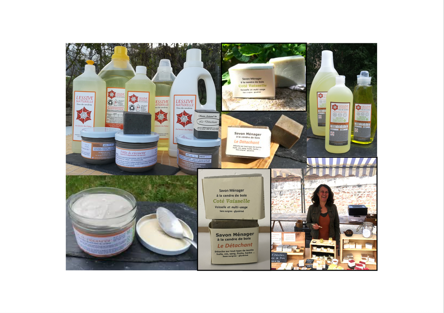 - sa Lessive Artisanale (à l'eau de pluie et cendres de bois) dans des bouteilles revalorisées (collecte participative dans mon point de vente)